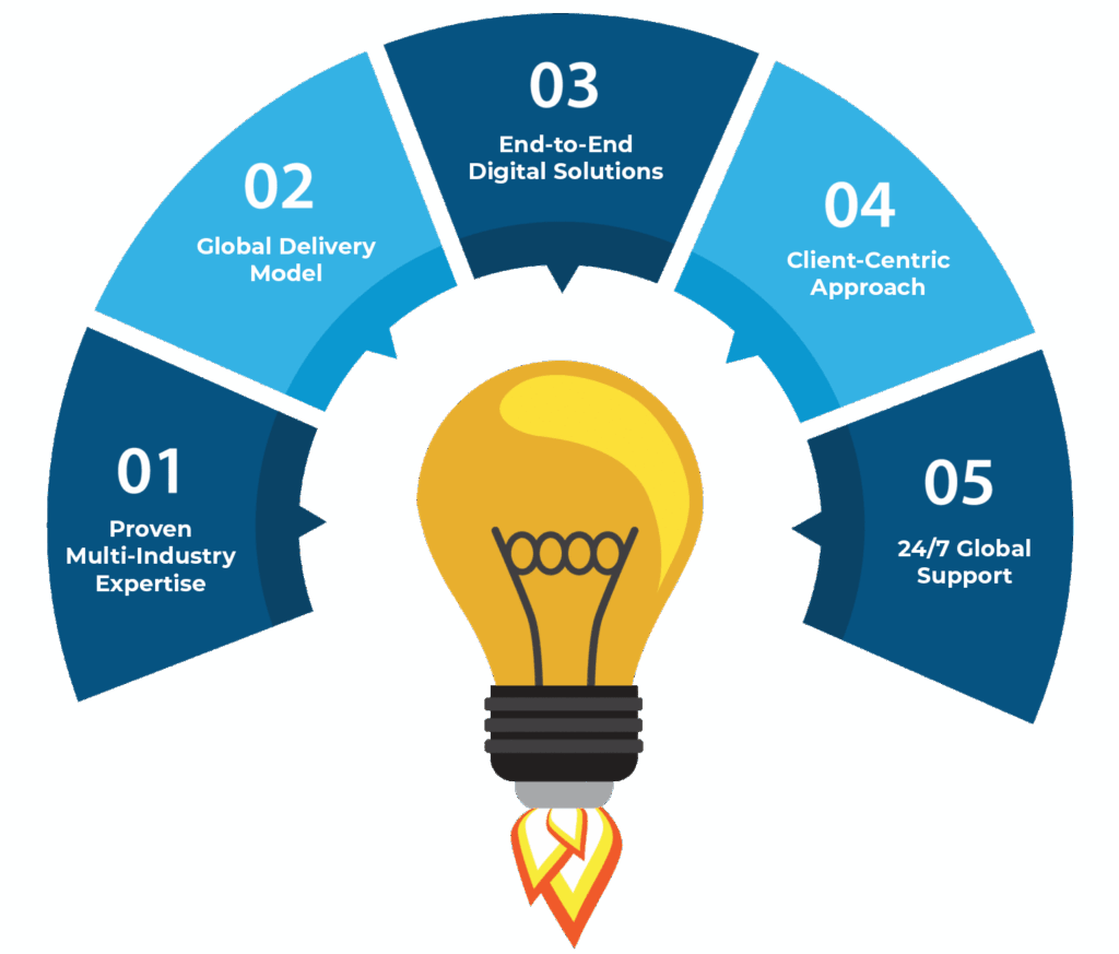 - Global Delivery Model - presence across India, the United States, and worldwide markets.