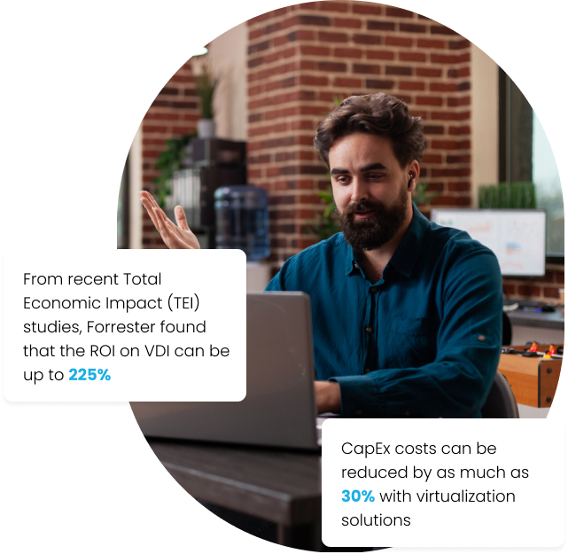 Our VDI platform virtualizes the entire workspace to deliver secure remote access. By moving desktops and apps to the cloud, we enable productivity and continuity without endpoint management headaches.